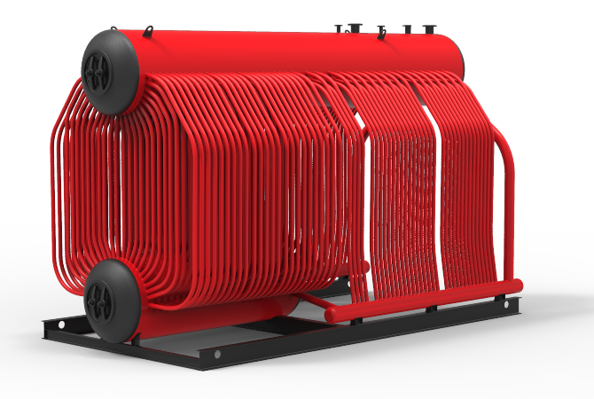 Котел паровой КПа-0,55Гн/Лж (КПС-0,75-0,7Гн/Лж) предназначен для получения пара давлением до 0,07 МПа (0,7 кгс/см2) при сжигании природного газа или легкого жидкого топлива. Паровой жаротрубный котел поставляется, собранным на опорной раме, одним транспортабельным блоком. Котел представляет собой конструкцию основными элементами которой являются корпус и жаровая труба, соединенные между собой передней и задней мембранами. Поверхностями нагрева котла являются радиационная часть жаровой трубы и конвективный пучок. Конвективный пучок выполнен из прямых труб, расположенных в жаровой трубе и наклоненных относительно горизонтальной оси котла. Наружняя очистка труб от сажистых отложений может быть осуществлена обдувкой сжатым воздухом, обмывкой горячей водой или механической очисткой. Котел комплектуется газовой горелкой ГБГ-0,6 или жидкотопливной горелкой ГБЖ-0,6, питательным насосом, запорной и регулирующей арматурой, контрольно-измерительными приборами и автоматикой безопасности (схема 13, схема 14).